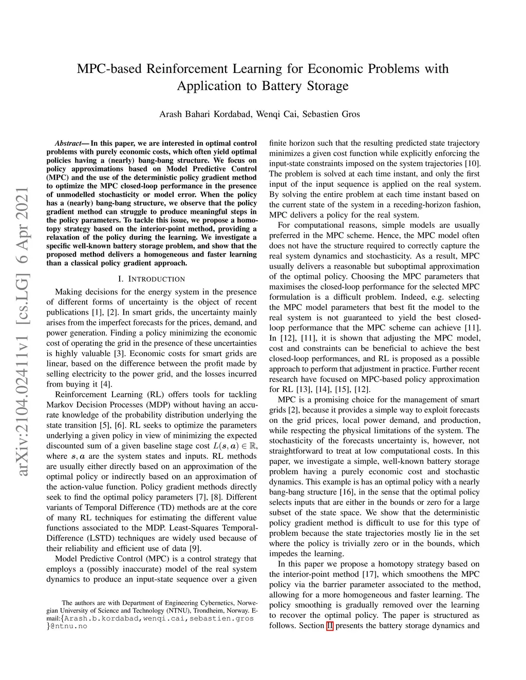 MPC-based Reinforcement Learning for Economic Problems with Application