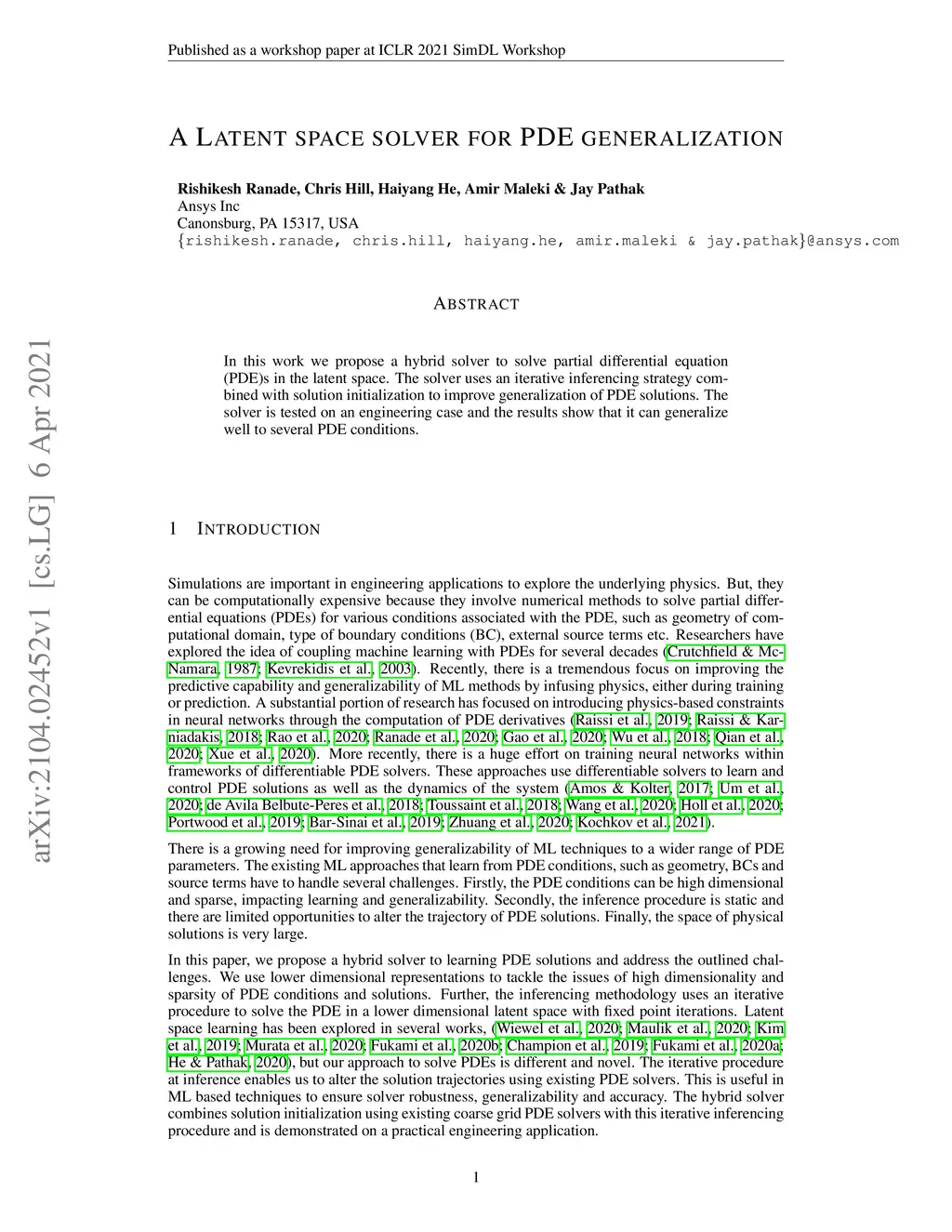 In this work we propose a hybrid solver to solve partial differential equation (PDE)s in the latent space. The solver uses an iterative inferencing strategy combined with solution initialization to improve generalization of PDE solutions. The solver is tested on an engineering case and the results show that it can generalize well to several PDE conditions.