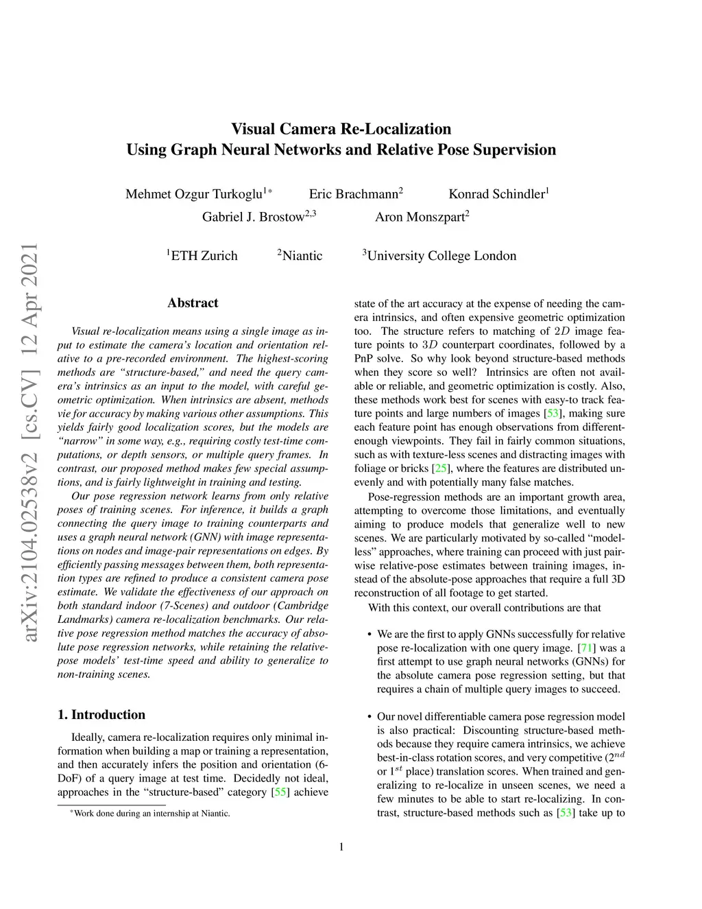 Visual Camera Re-Localization Using Graph Neural Networks and Relative
