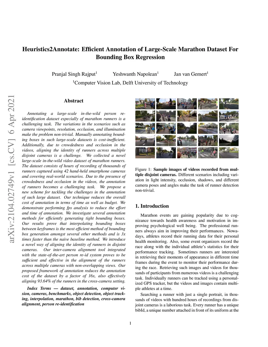 Annotating a large-scale in-the-wild person re-identification dataset especially of marathon runners is a challenging task. The variations in the scenarios such as camera viewpoints, resolution, occlusion, and illumination make the problem non-trivial. Manually annotating bounding boxes in such large-scale datasets is cost-inefficient. Additionally, due to crowdedness and occlusion in the videos, aligning the identity of runners across multiple disjoint cameras is a challenge. We collected a novel large-scale in-the-wild video dataset of marathon runners. The dataset consists of hours of recording of thousands of runners captured using 42 hand-held smartphone cameras and covering real-world scenarios. Due to the presence of crowdedness and occlusion in the videos, the annotation of runners becomes a challenging task. We propose a new scheme for tackling the challenges in the annotation of such large dataset. Our technique reduces the overall cost of annotation in terms of time as well as budget. We demonstrate performing fps analysis to reduce the effort and time of annotation. We investigate several annotation methods for efficiently generating tight bounding boxes. Our results prove that interpolating bounding boxes between keyframes is the most efficient method of bounding box generation amongst several other methods and is 3x times faster than the naive baseline method. We introduce a novel way of aligning the identity of runners in disjoint cameras. Our inter-camera alignment tool integrated with the state-of-the-art person re-id system proves to be sufficient and effective in the alignment of the runners across multiple cameras with non-overlapping views. Our proposed framework of annotation reduces the annotation cost of the dataset by a factor of 16x, also effectively aligning 93.64% of the runners in the cross-camera setting.
