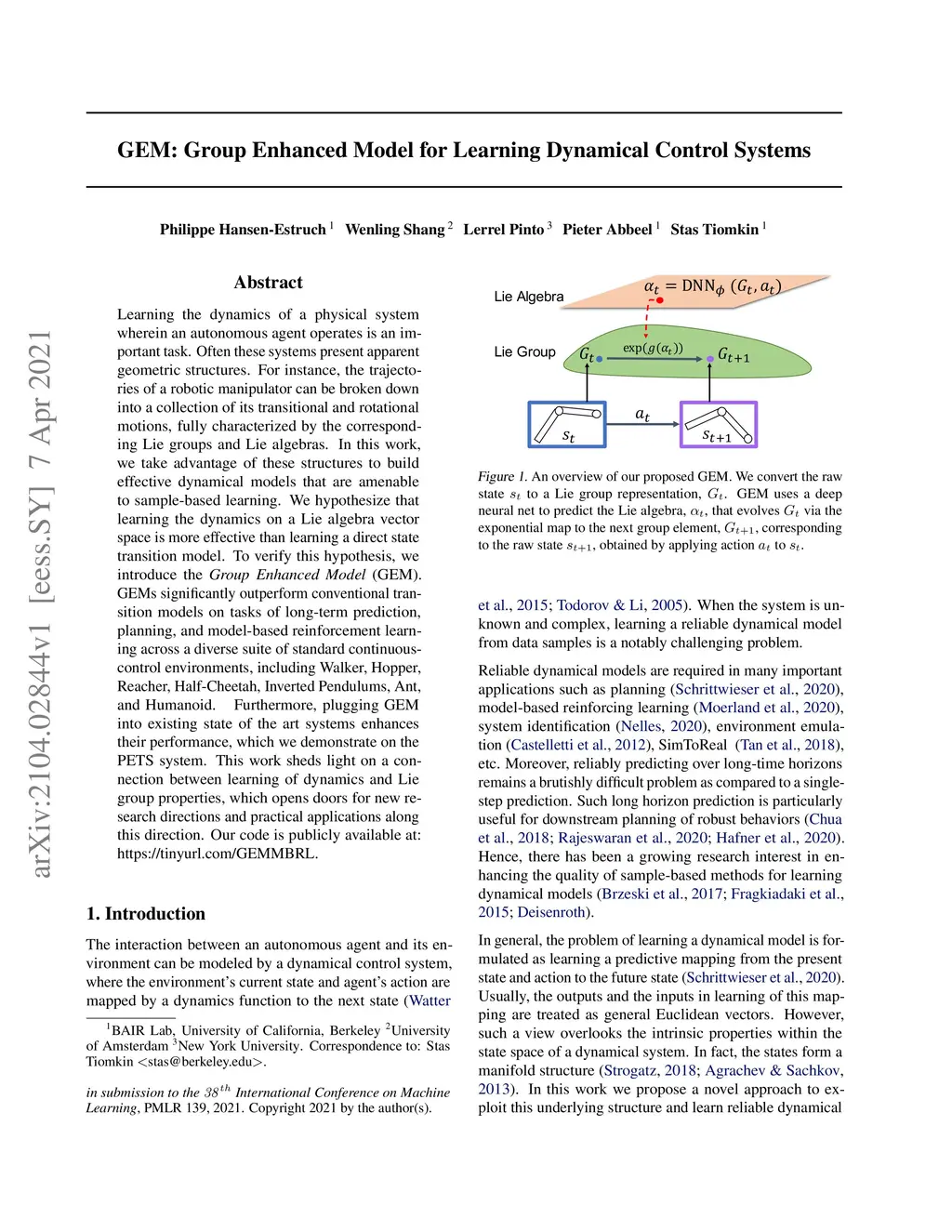 GEM: Group Enhanced Model for Learning Dynamical Control Systems