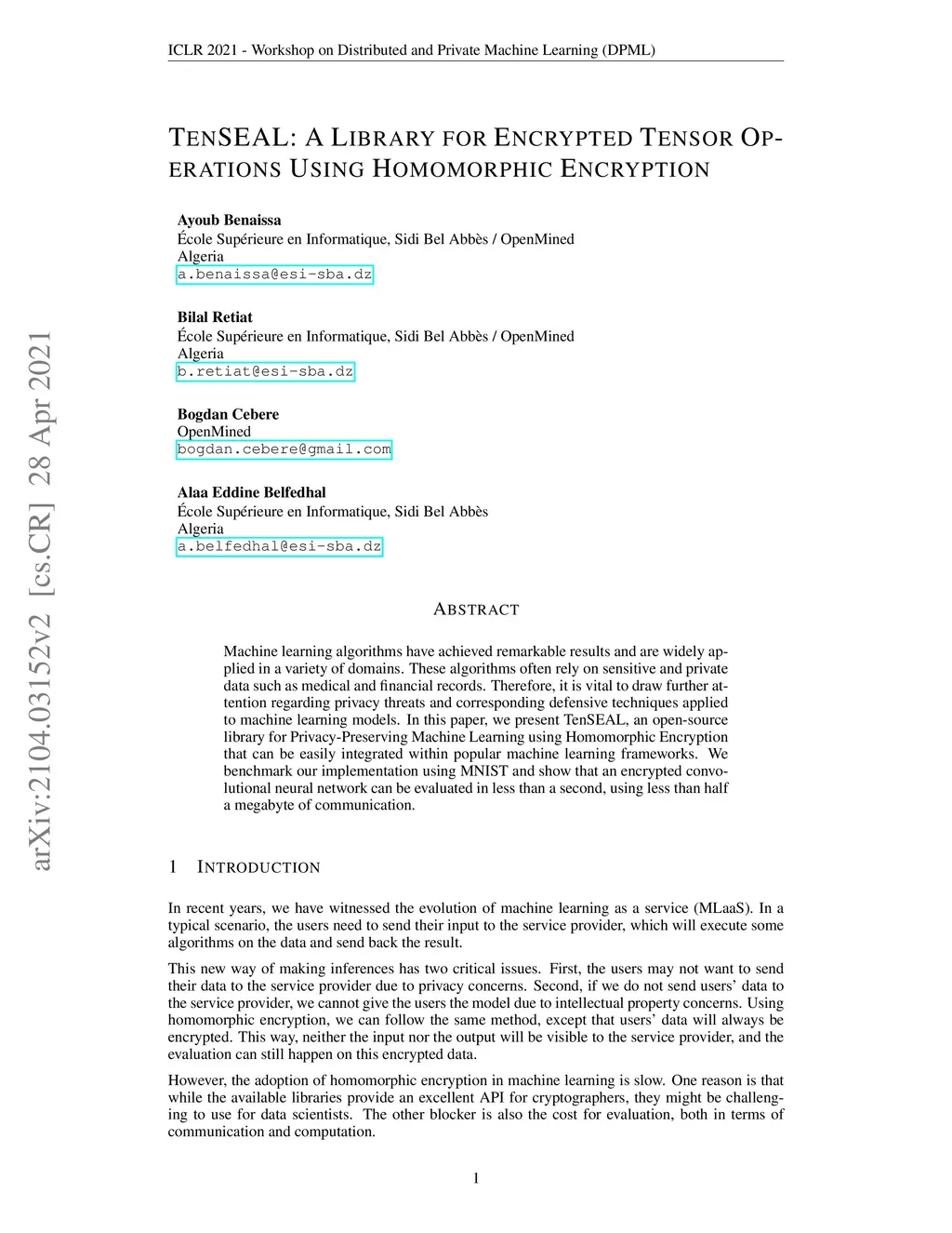 TenSEAL: A Library for Encrypted Tensor Operations Using Homomorphic