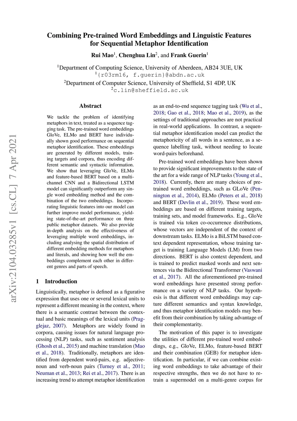 Combining Pre-trained Word Embeddings and Linguistic Features for
