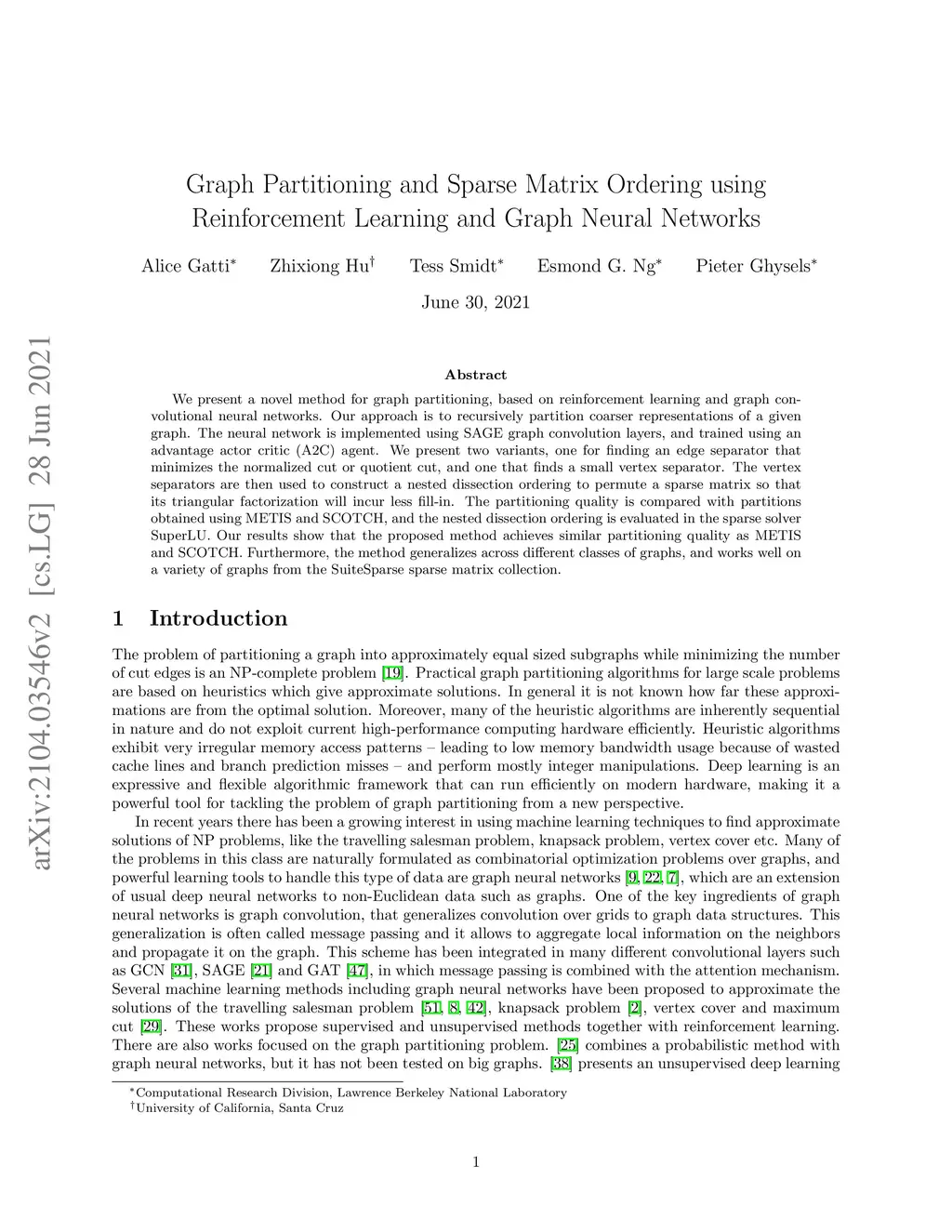 Graph Partitioning and Sparse Matrix Ordering using Reinforcement