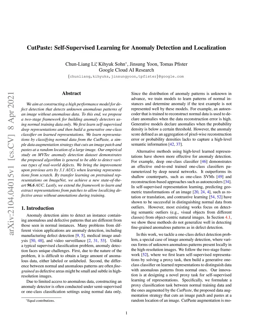 CutPaste: Self-Supervised Learning for Anomaly Detection and
