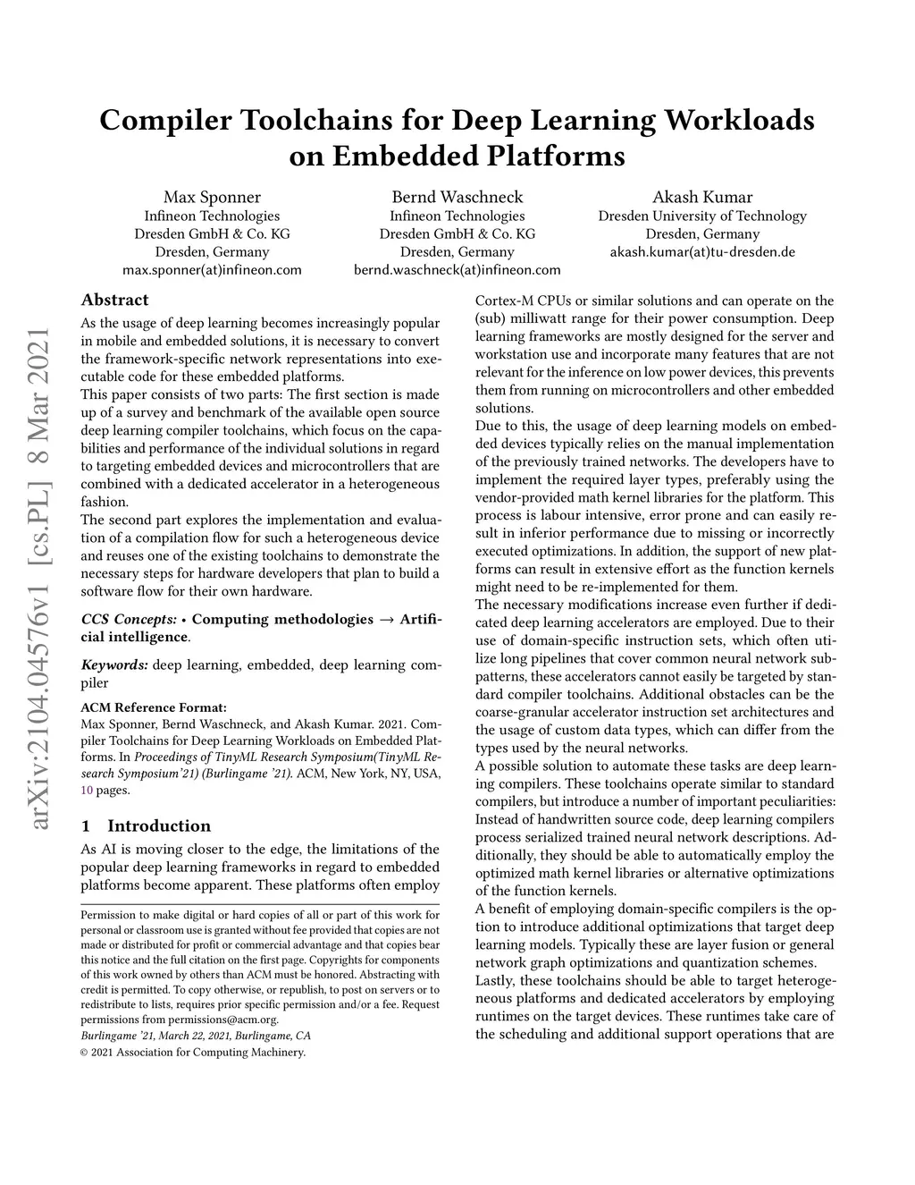 Compiler Toolchains for Deep Learning Workloads on Embedded Platforms