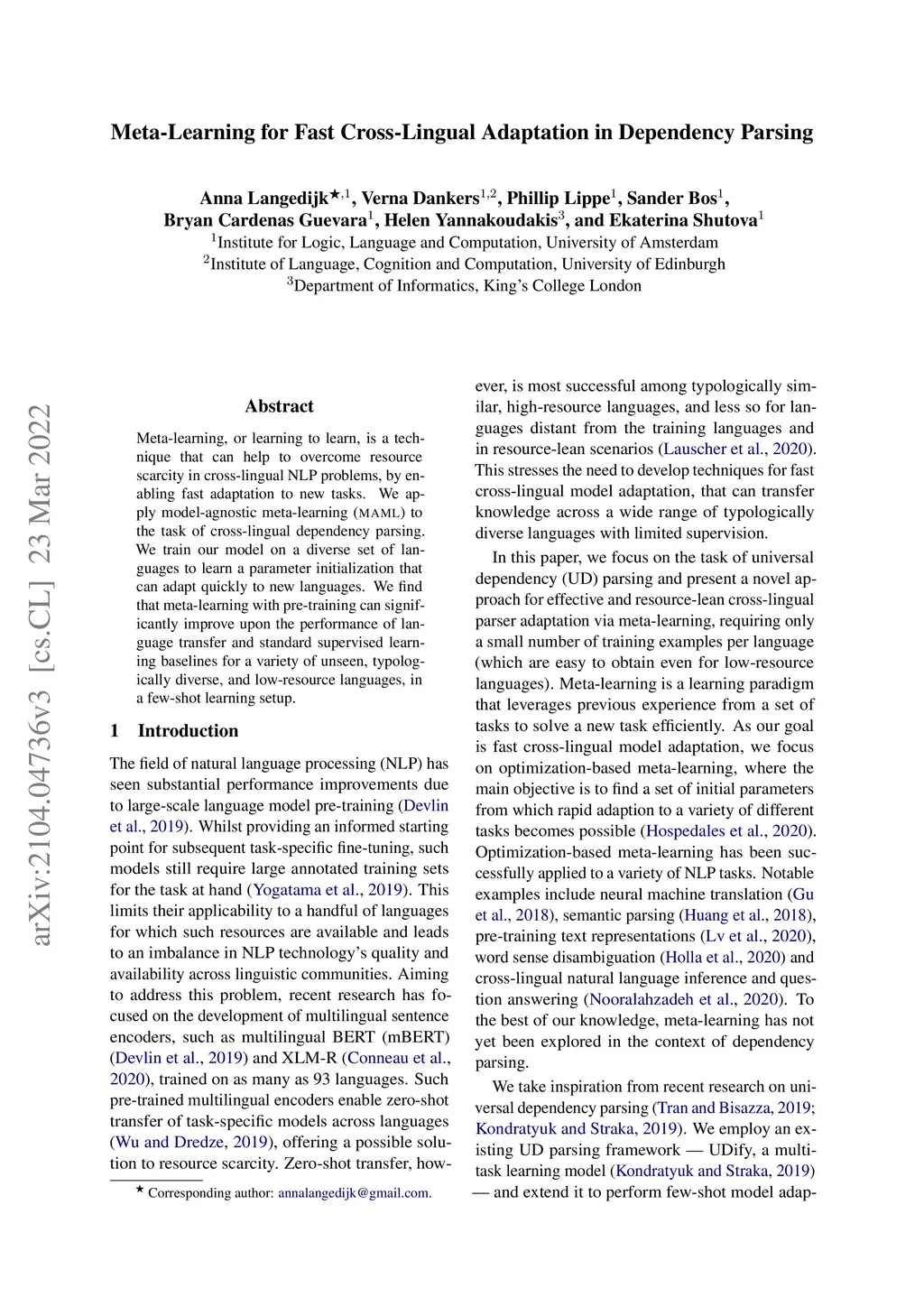 Meta-Learning for Fast Cross-Lingual Adaptation in Dependency Parsing