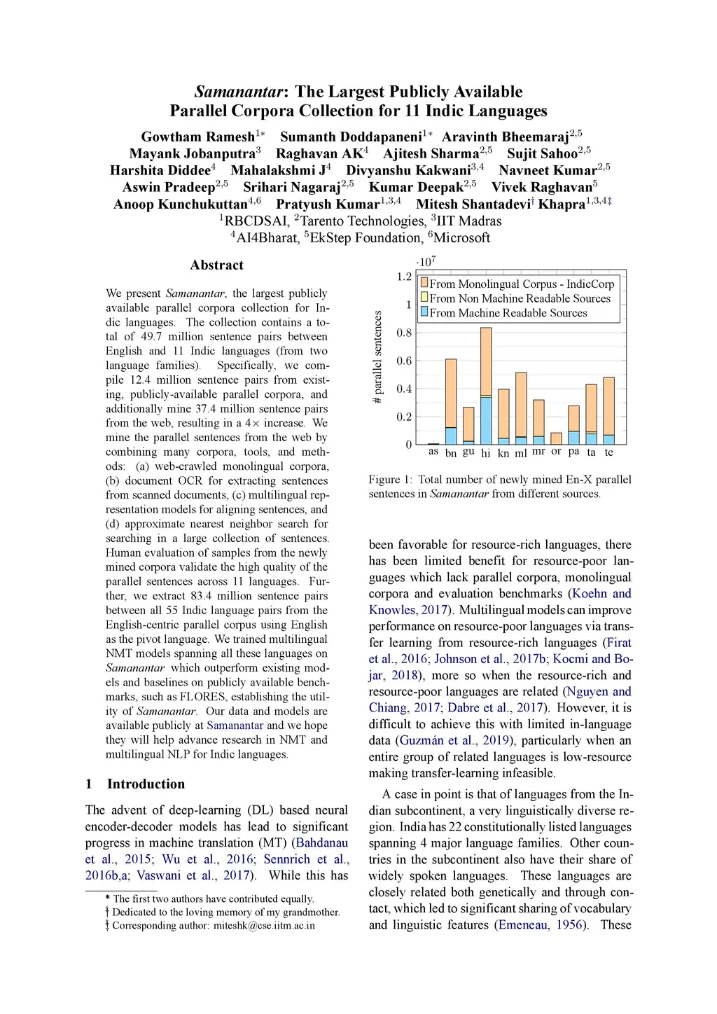 Samanantar: The Largest Publicly Available Parallel Corpora Collection