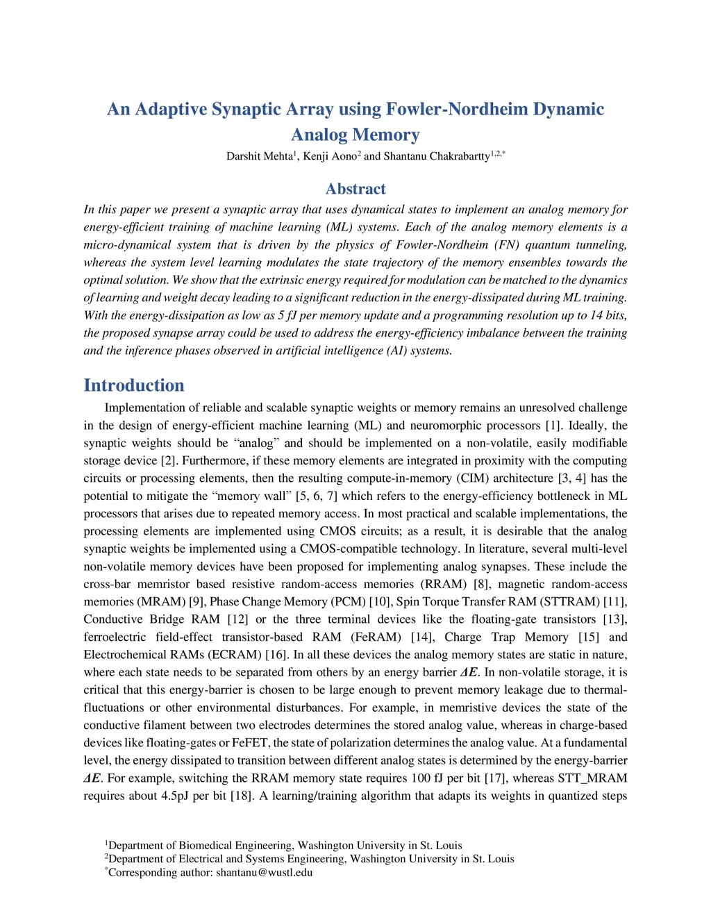 An Adaptive Synaptic Array using Fowler-Nordheim Dynamic Analog Memory
