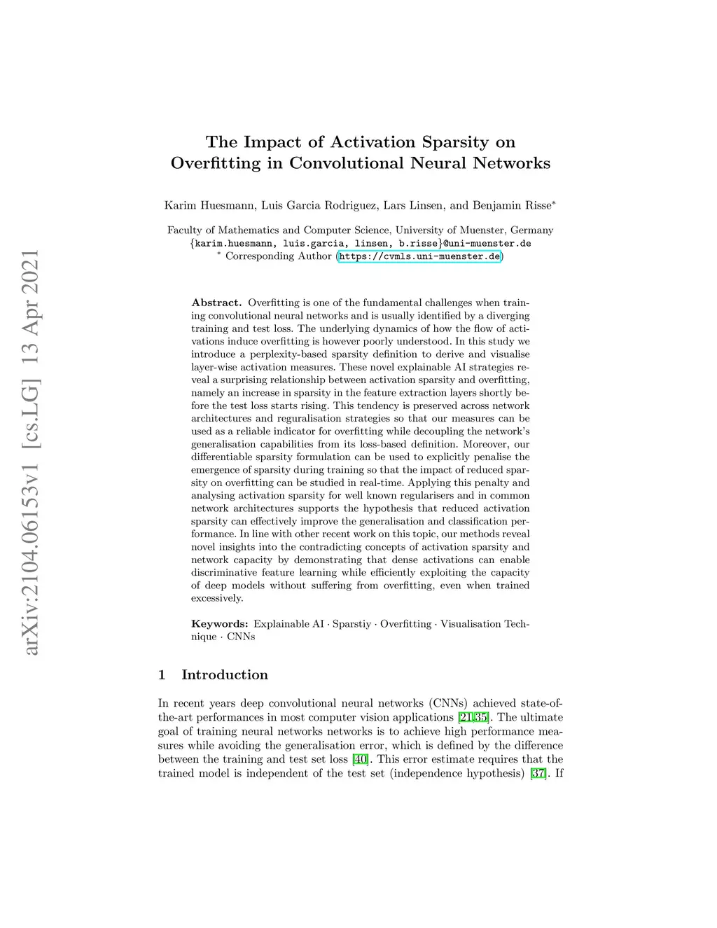 Overfitting is one of the fundamental challenges when training convolutional neural networks and is usually identified by a diverging training and test loss. The underlying dynamics of how the flow of activations induce overfitting is however poorly understood. In this study we introduce a perplexity-based sparsity definition to derive and visualise layer-wise activation measures. These novel explainable AI strategies reveal a surprising relationship between activation sparsity and overfitting, namely an increase in sparsity in the feature extraction layers shortly before the test loss starts rising. This tendency is preserved across network architectures and reguralisation strategies so that our measures can be used as a reliable indicator for overfitting while decoupling the network's generalisation capabilities from its loss-based definition. Moreover, our differentiable sparsity formulation can be used to explicitly penalise the emergence of sparsity during training so that the impact of reduced sparsity on overfitting can be studied in real-time. Applying this penalty and analysing activation sparsity for well known regularisers and in common network architectures supports the hypothesis that reduced activation sparsity can effectively improve the generalisation and classification performance. In line with other recent work on this topic, our methods reveal novel insights into the contradicting concepts of activation sparsity and network capacity by demonstrating that dense activations can enable discriminative feature learning while efficiently exploiting the capacity of deep models without suffering from overfitting, even when trained excessively.