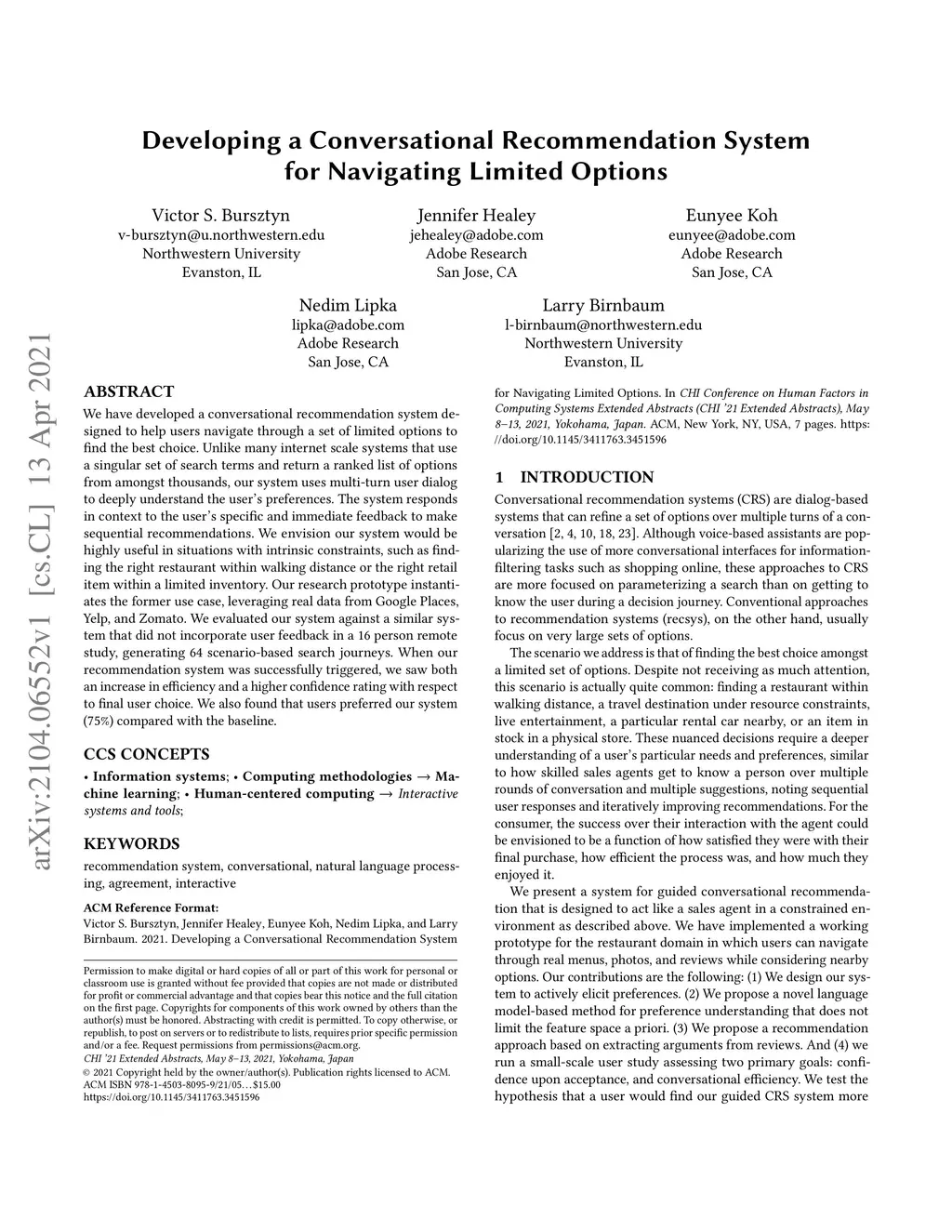 Developing a Conversational Recommendation System for Navigating Limited