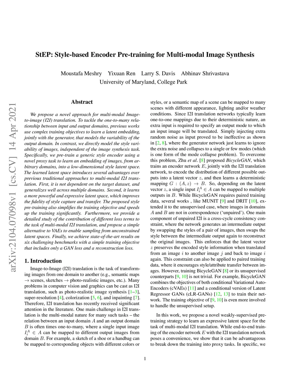 StEP: Style-based Encoder Pre-training for Multi-modal Image Synthesis