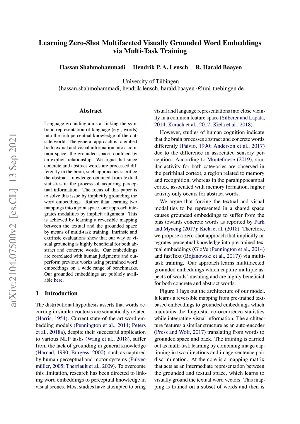 Learning Zero-Shot Multifaceted Visually Grounded Word Embeddings via