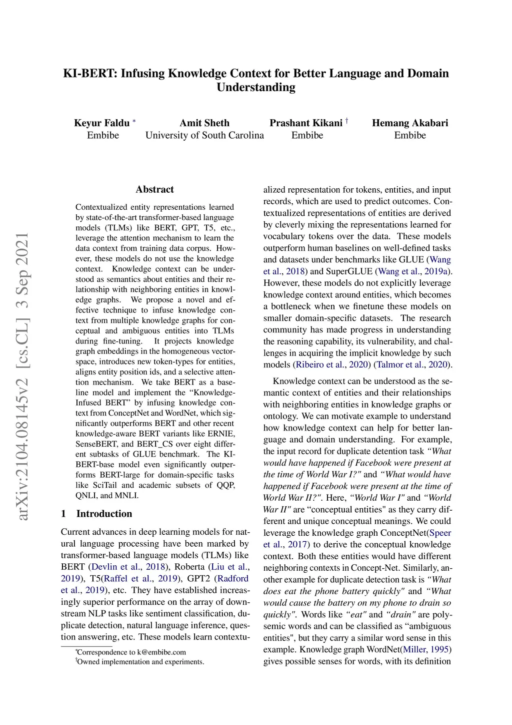 KI-BERT: Infusing Knowledge Context for Better Language and Domain