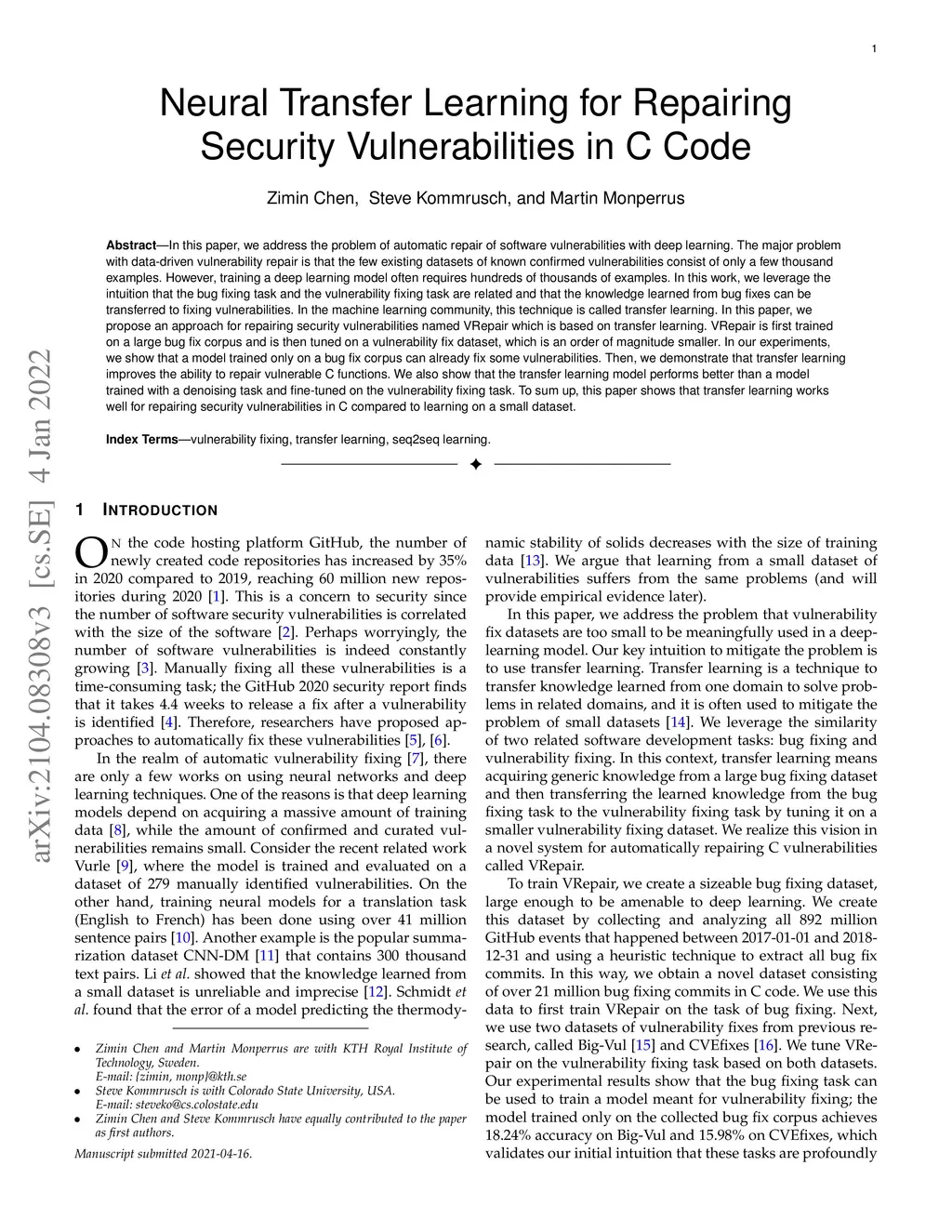 Neural Transfer Learning for Repairing Security Vulnerabilities in C