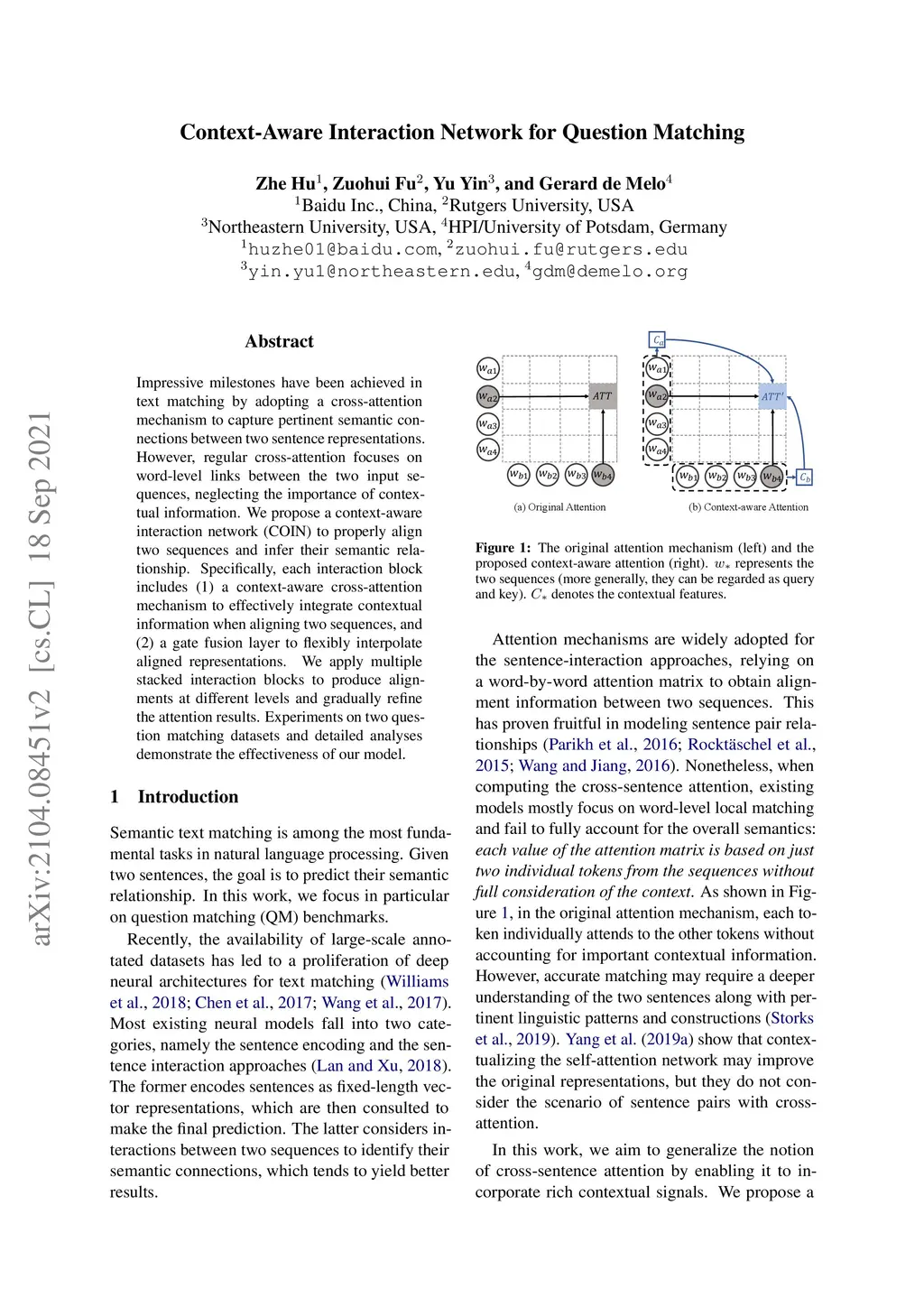 Context-Aware Interaction Network for Question Matching