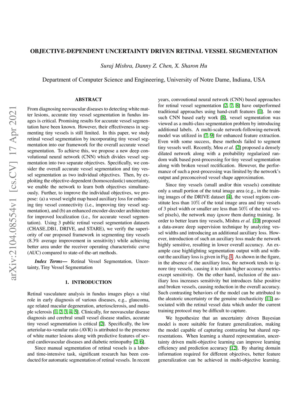 Objective-Dependent Uncertainty Driven Retinal Vessel Segmentation