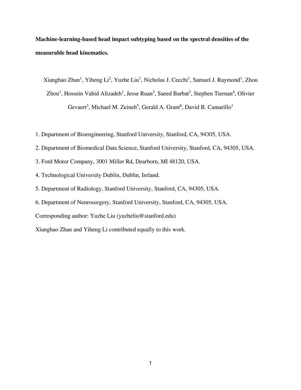 Objective: Traumatic brain injury can be caused by head impacts, but many brain injury risk estimation models are not equally accurate across the variety of impacts that patients may undergo and the characteristics of different types of impacts are not well studied. We investigated the spectral characteristics of different head impact types with kinematics classification. Methods: Data was analyzed from 3,262 head impacts from lab reconstruction, American football, mixed martial arts, and publicly available car crash data. A random forest classifier with spectral densities of linear acceleration and angular velocity was built to classify head impact types (e.g., football, car crash, mixed martial arts). To test the classifier robustness, another 271 lab-reconstructed impacts were obtained from 5 other instrumented mouthguards. Finally, with the classifier, type-specific, nearest-neighbor regression models were built for brain strain. Results: The classifier reached a median accuracy of 96% over 1,000 random partitions of training and test sets. The most important features in the classification included both low-frequency and high-frequency features, both linear acceleration features and angular velocity features. Different head impact types had different distributions of spectral densities in low-frequency and high-frequency ranges (e.g., the spectral densities of MMA impacts were higher in high-frequency range than in the low-frequency range). The type-specific regression showed a generally higher R^2-value than baseline models without classification. Conclusion: The machine-learning-based classifier enables a better understanding of the impact kinematics spectral density in different sports, and it can be applied to evaluate the quality of impact-simulation systems and on-field data augmentation.