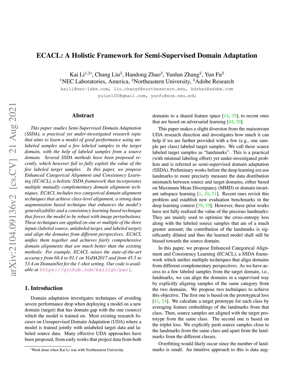 ECACL: A Holistic Framework for Semi-Supervised Domain Adaptation