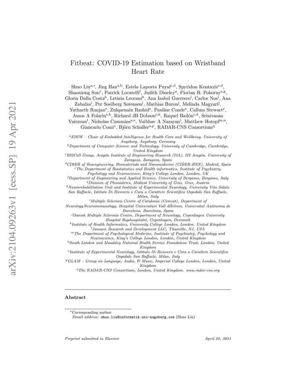 Fitbeat: COVID-19 Estimation based on Wristband Heart Rate