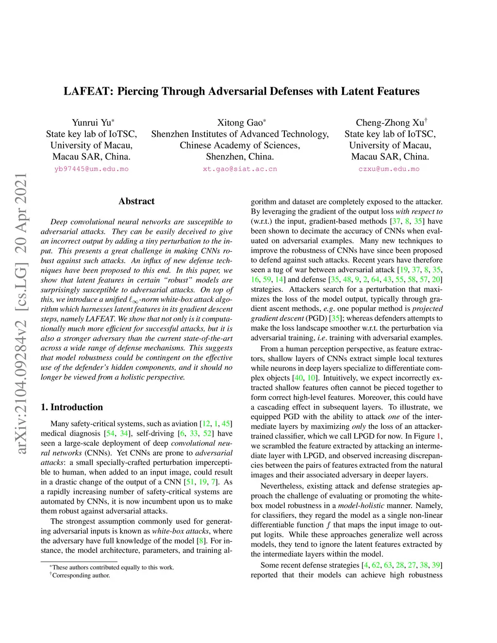 Deep convolutional neural networks are susceptible to adversarial attacks. They can be easily deceived to give an incorrect output by adding a tiny perturbation to the input. This presents a great challenge in making CNNs robust against such attacks. An influx of new defense techniques have been proposed to this end. In this paper, we show that latent features in certain "robust" models are surprisingly susceptible to adversarial attacks. On top of this, we introduce a unified -norm white-box attack algorithm which harnesses latent features in its gradient descent steps, namely LAFEAT. We show that not only is it computationally much more efficient for successful attacks, but it is also a stronger adversary than the current state-of-the-art across a wide range of defense mechanisms. This suggests that model robustness could be contingent on the effective use of the defender's hidden components, and it should no longer be viewed from a holistic perspective.
