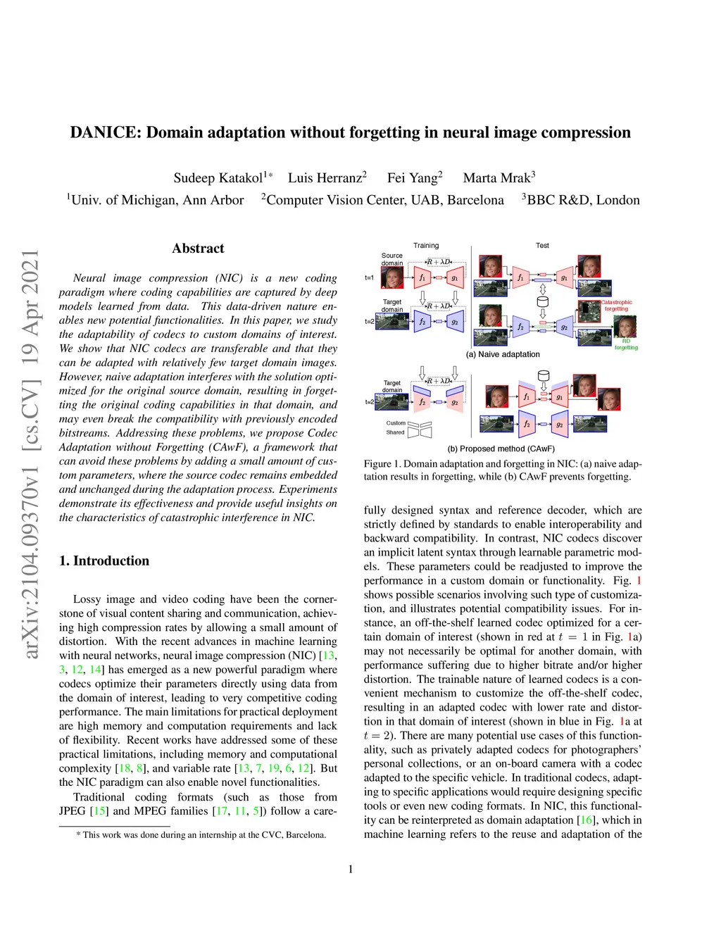 DANICE: Domain adaptation without forgetting in neural image compression