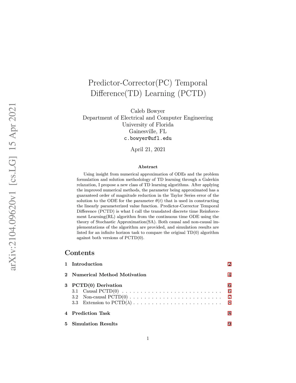 Predictor-Corrector(PC) Temporal Difference(TD) Learning (PCTD)