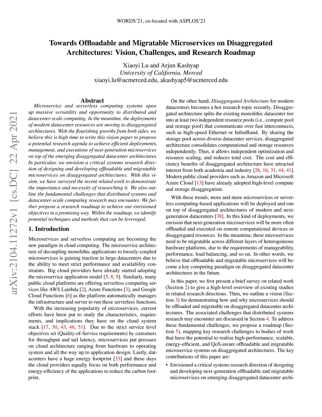 Microservice and serverless computing systems open up massive versatility and opportunity to distributed and datacenter-scale computing. In the meantime, the deployments of modern datacenter resources are moving to disaggregated architectures. With the flourishing growths from both sides, we believe this is high time to write this vision paper to propose a potential research agenda to achieve efficient deployments, management, and executions of next-generation microservices on top of the emerging disaggregated datacenter architectures. In particular, we envision a critical systems research direction of designing and developing offloadable and migratable microservices on disaggregated architectures. With this vision, we have surveyed the recent related work to demonstrate the importance and necessity of researching it. We also outline the fundamental challenges that distributed systems and datacenter-scale computing research may encounter. We further propose a research roadmap to achieve our envisioned objectives in a promising way. Within the roadmap, we identify potential techniques and methods that can be leveraged.