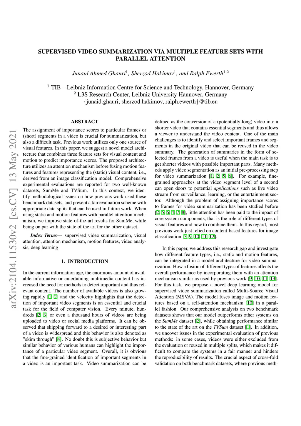 Supervised Video Summarization via Multiple Feature Sets with Parallel