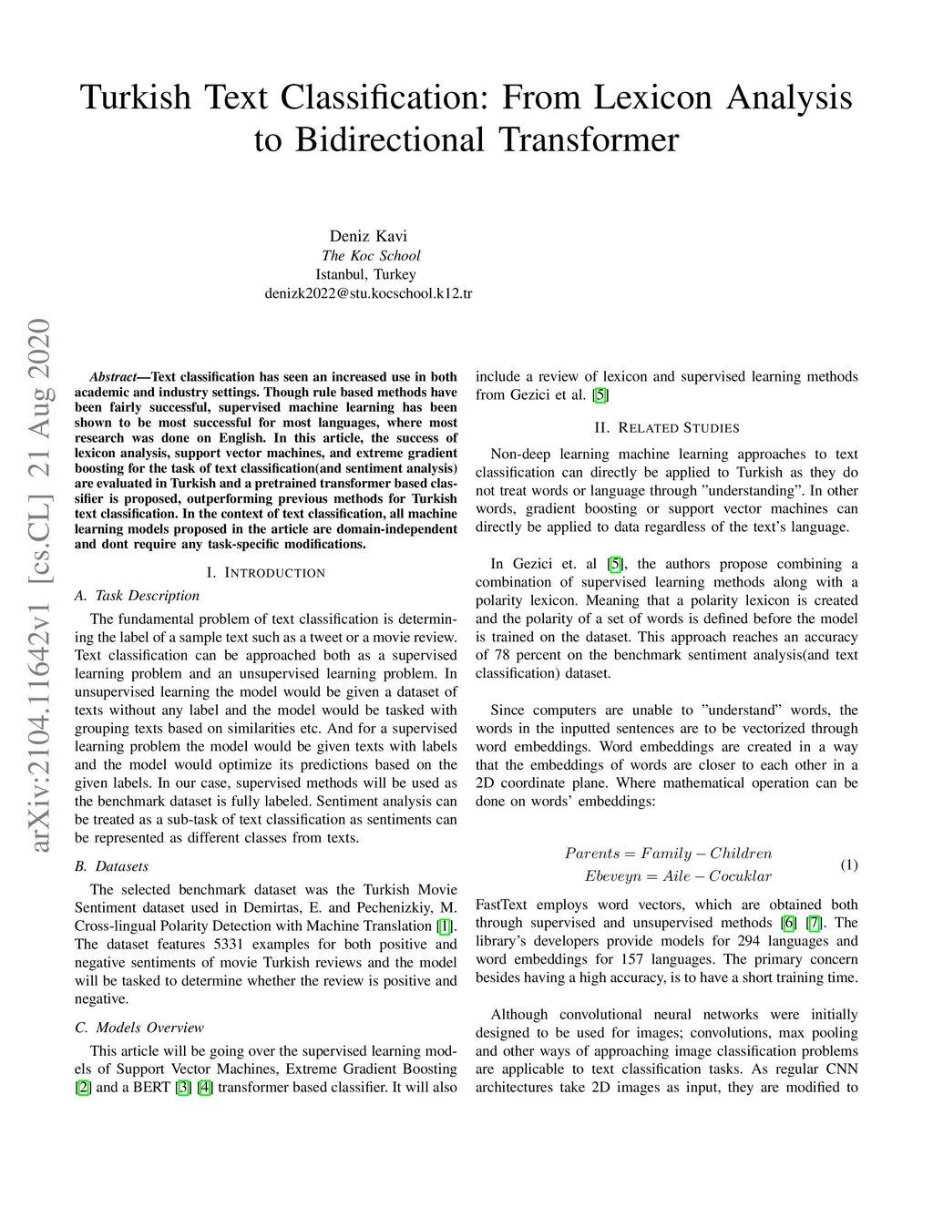 Turkish Text Classification: From Lexicon Analysis to Bidirectional