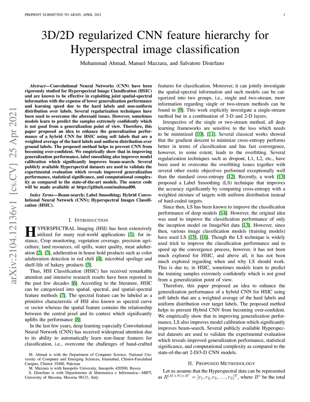 3D/2D regularized CNN feature hierarchy for Hyperspectral image