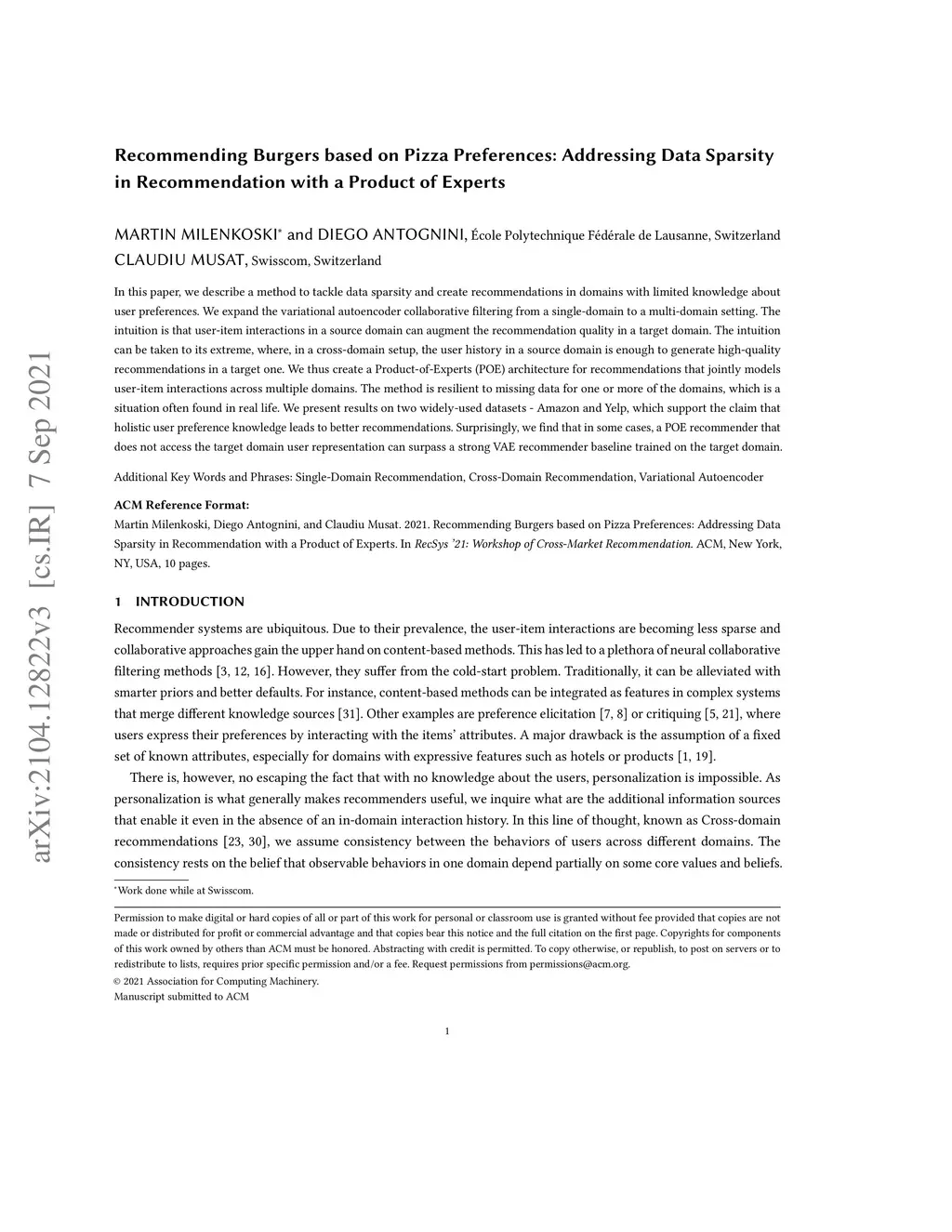 Recommending Burgers based on Pizza Preferences: Addressing Data
