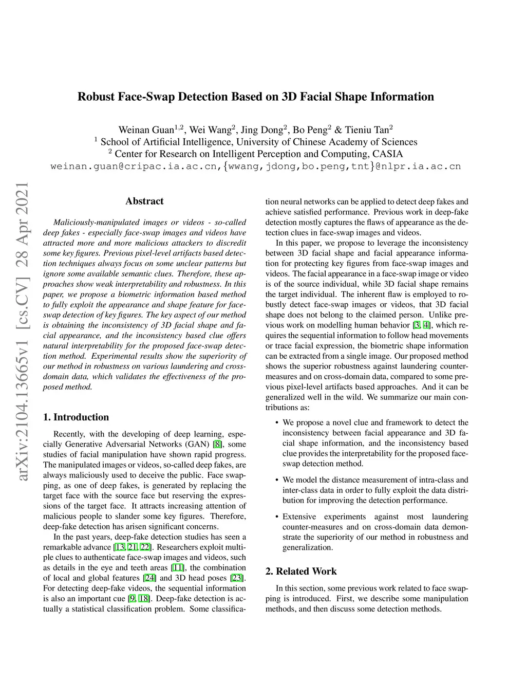 Robust Face-Swap Detection Based on 3D Facial Shape Information
