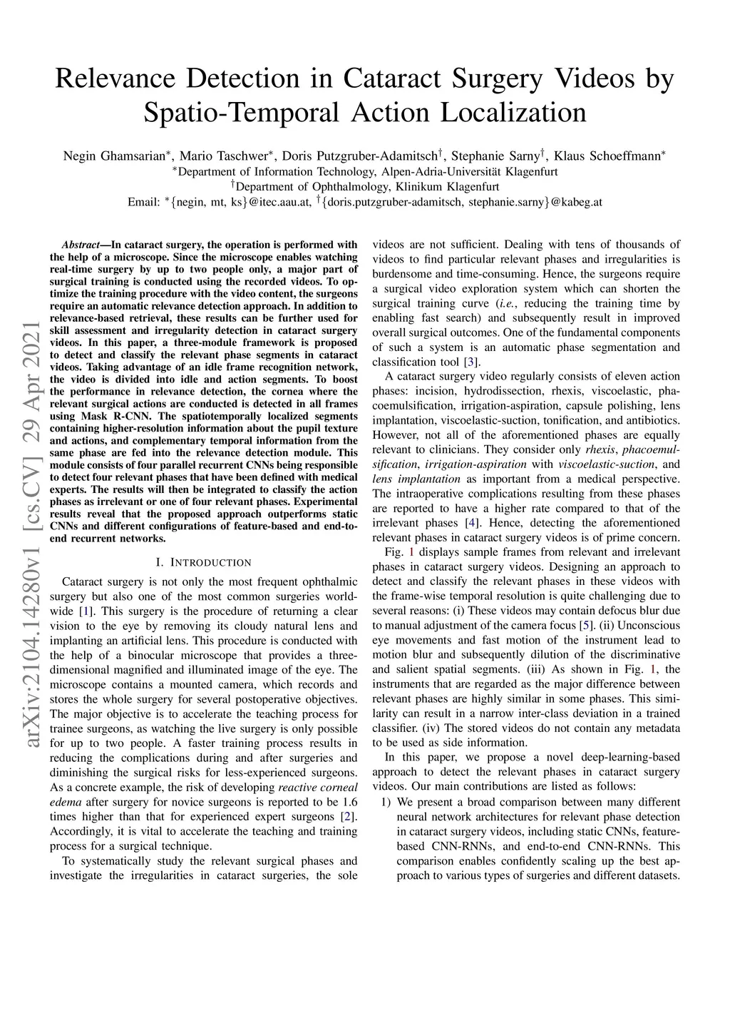 Relevance Detection in Cataract Surgery Videos by Spatio-Temporal Action