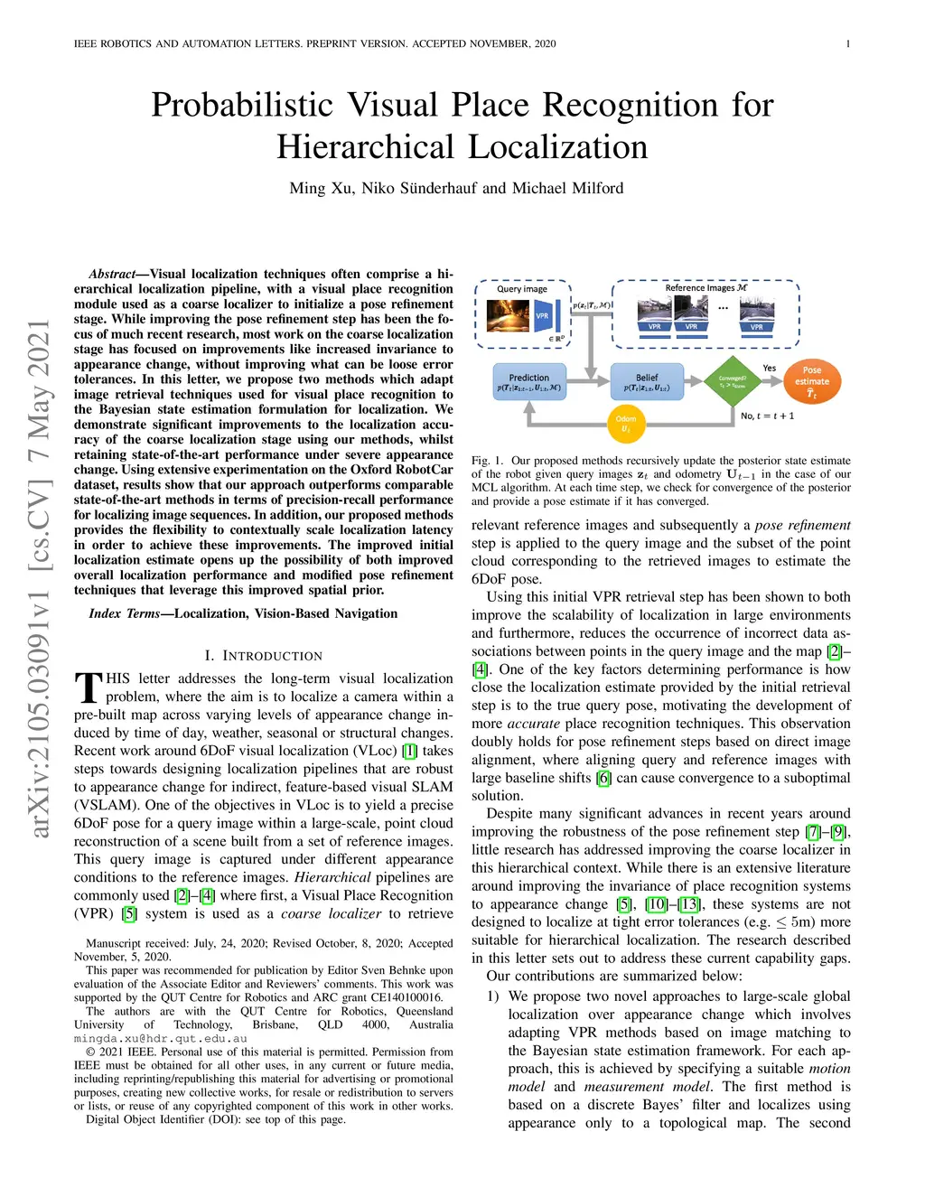 Probabilistic Visual Place Recognition for Hierarchical Localization