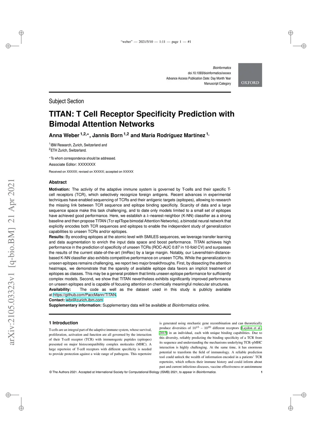 TITAN: T Cell Receptor Specificity Prediction with Bimodal Attention