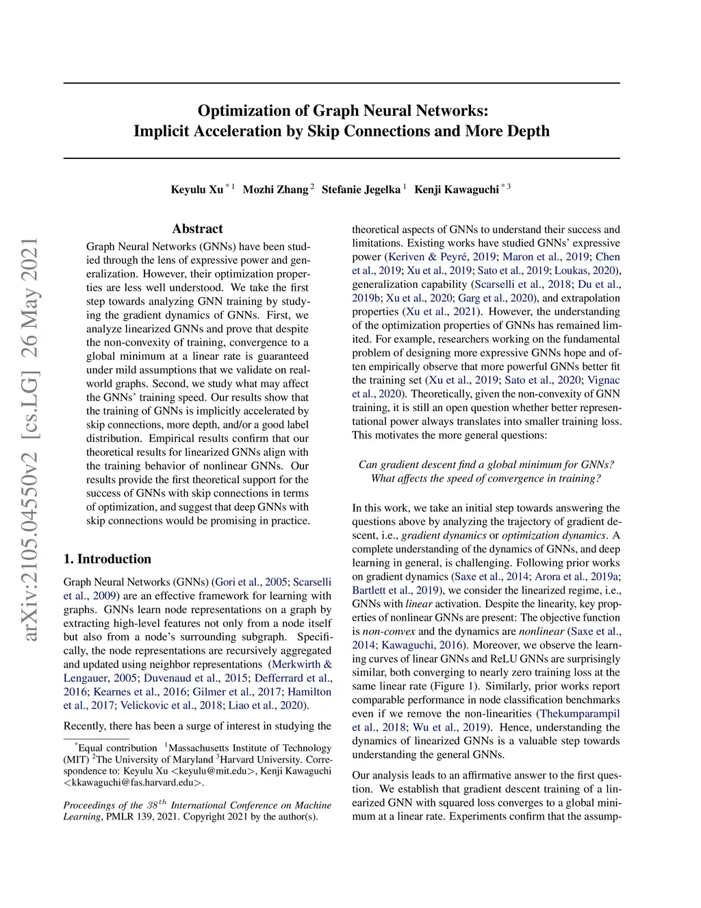 Optimization of Graph Neural Networks: Implicit Acceleration by Skip