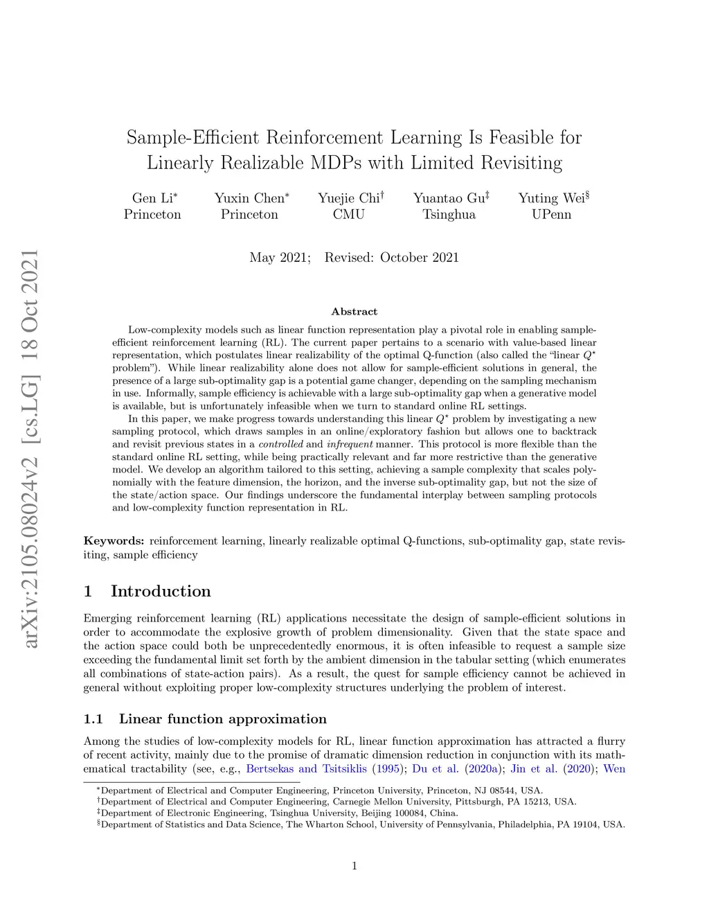 Sample-Efficient Reinforcement Learning Is Feasible for Linearly