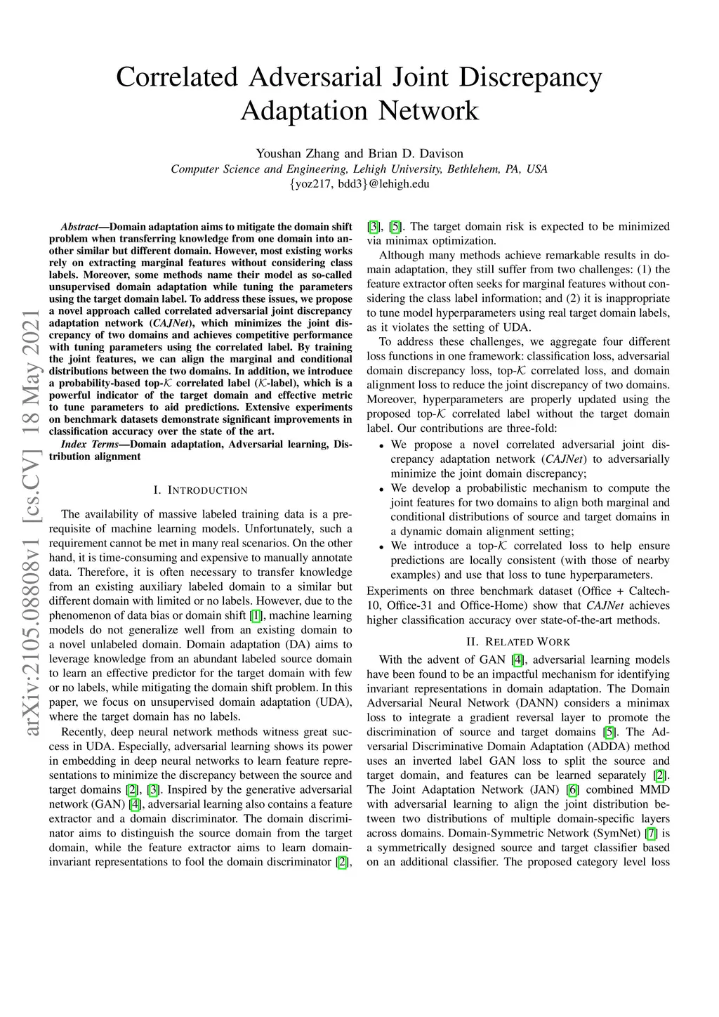 Correlated Adversarial Joint Discrepancy Adaptation Network