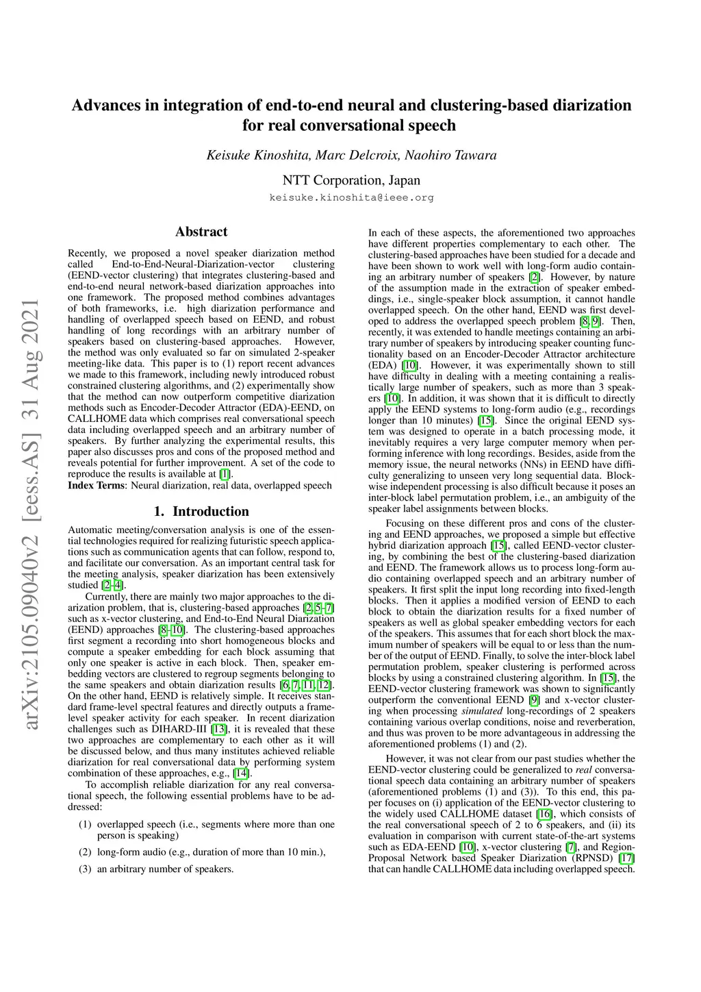 diarization for real conversational speech