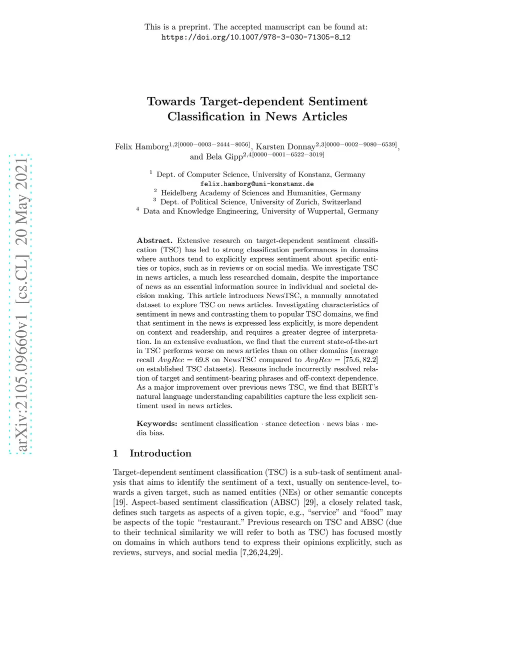 Towards Target-dependent Sentiment Classification in News Articles