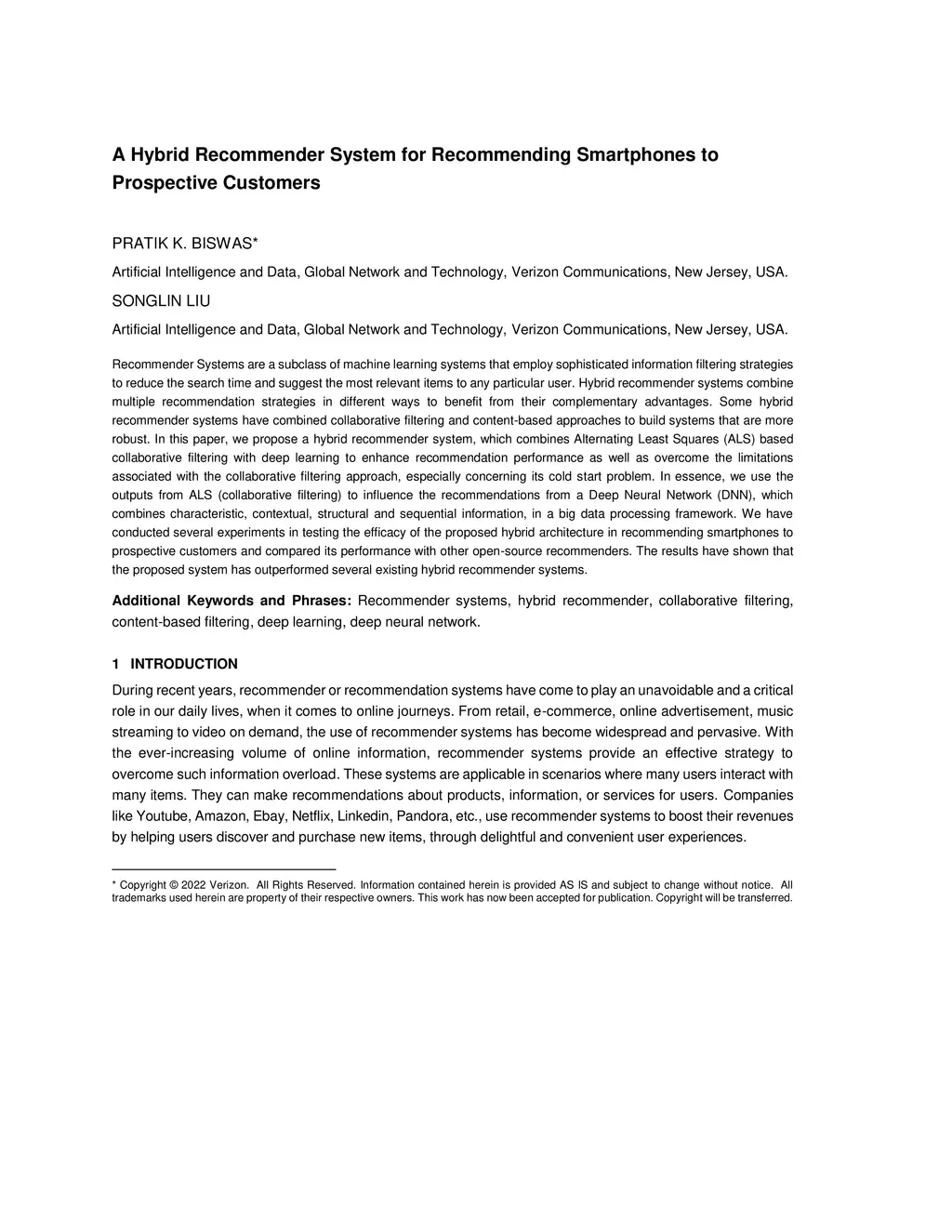 A Hybrid Recommender System for Recommending Smartphones to Prospective