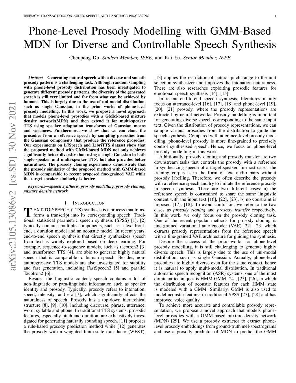 Generating natural speech with a diverse and smooth prosody pattern is a challenging task. Although random sampling with phone-level prosody distribution has been investigated to generate different prosody patterns, the diversity of the generated speech is still very limited and far from what can be achieved by humans. This is largely due to the use of uni-modal distribution, such as single Gaussian, in the prior works of phone-level prosody modelling. In this work, we propose a novel approach that models phone-level prosodies with a GMM-based mixture density network(MDN) and then extend it for multi-speaker TTS using speaker adaptation transforms of Gaussian means and variances. Furthermore, we show that we can clone the prosodies from a reference speech by sampling prosodies from the Gaussian components that produce the reference prosodies. Our experiments on LJSpeech and LibriTTS dataset show that the proposed method with GMM-based MDN not only achieves significantly better diversity than using a single Gaussian in both single-speaker and multi-speaker TTS, but also provides better naturalness. The prosody cloning experiments demonstrate that the prosody similarity of the proposed method with GMM-based MDN is comparable to recent proposed fine-grained VAE while the target speaker similarity is better.