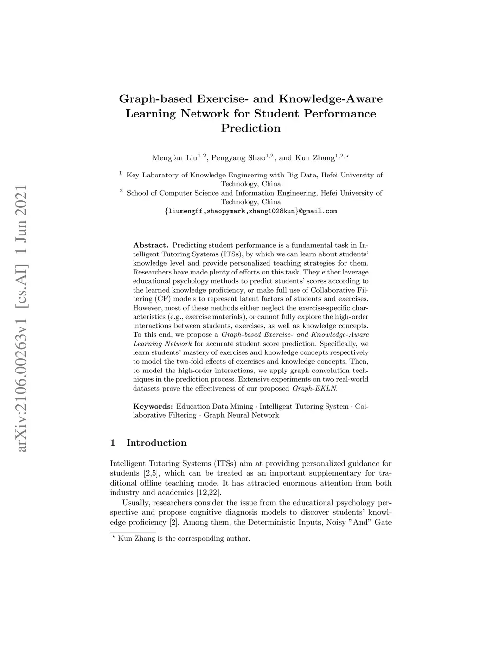 Graph-based Exercise- and Knowledge-Aware Learning Network for Student