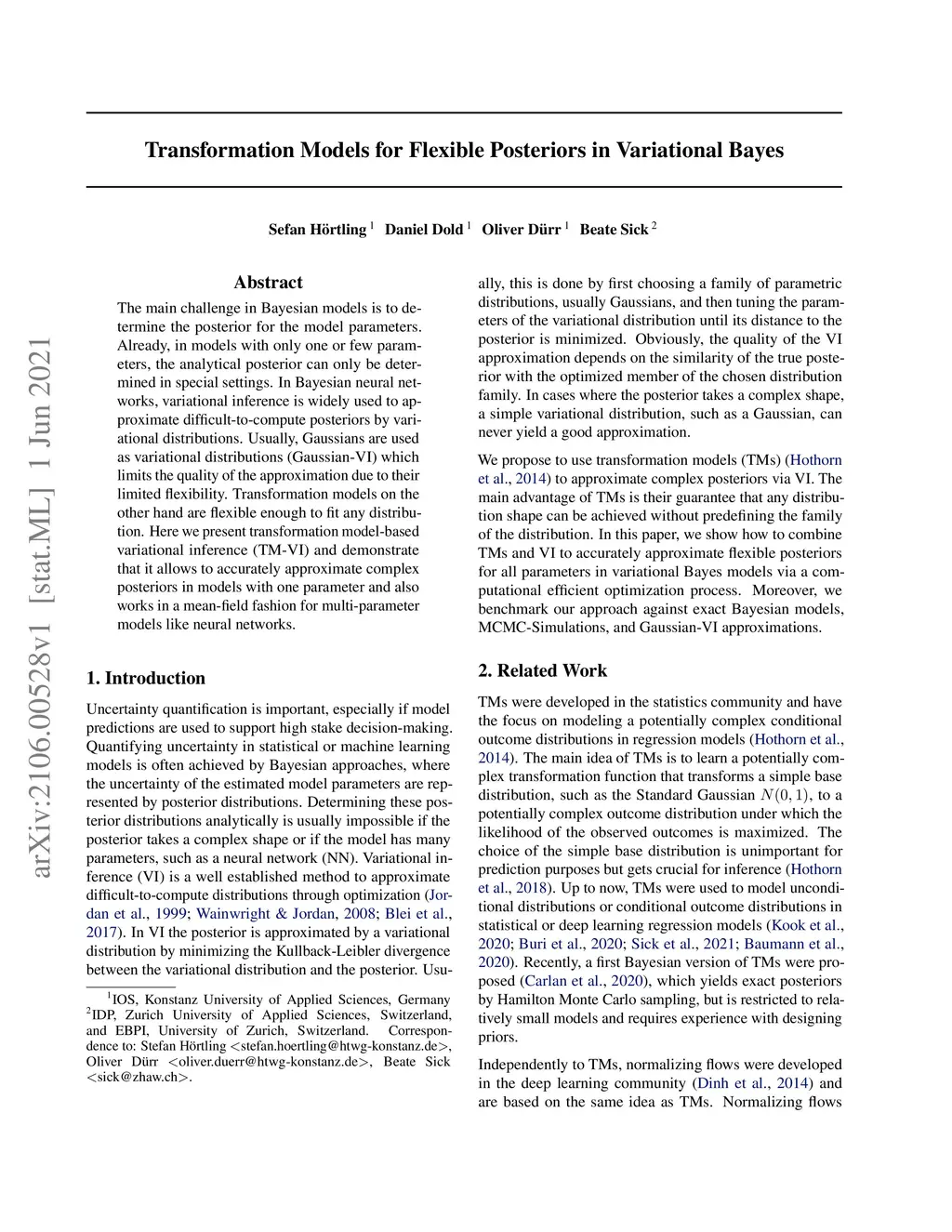 The main challenge in Bayesian models is to determine the posterior for the model parameters. Already, in models with only one or few parameters, the analytical posterior can only be determined in special settings. In Bayesian neural networks, variational inference is widely used to approximate difficult-to-compute posteriors by variational distributions. Usually, Gaussians are used as variational distributions (Gaussian-VI) which limits the quality of the approximation due to their limited flexibility. Transformation models on the other hand are flexible enough to fit any distribution. Here we present transformation model-based variational inference (TM-VI) and demonstrate that it allows to accurately approximate complex posteriors in models with one parameter and also works in a mean-field fashion for multi-parameter models like neural networks.