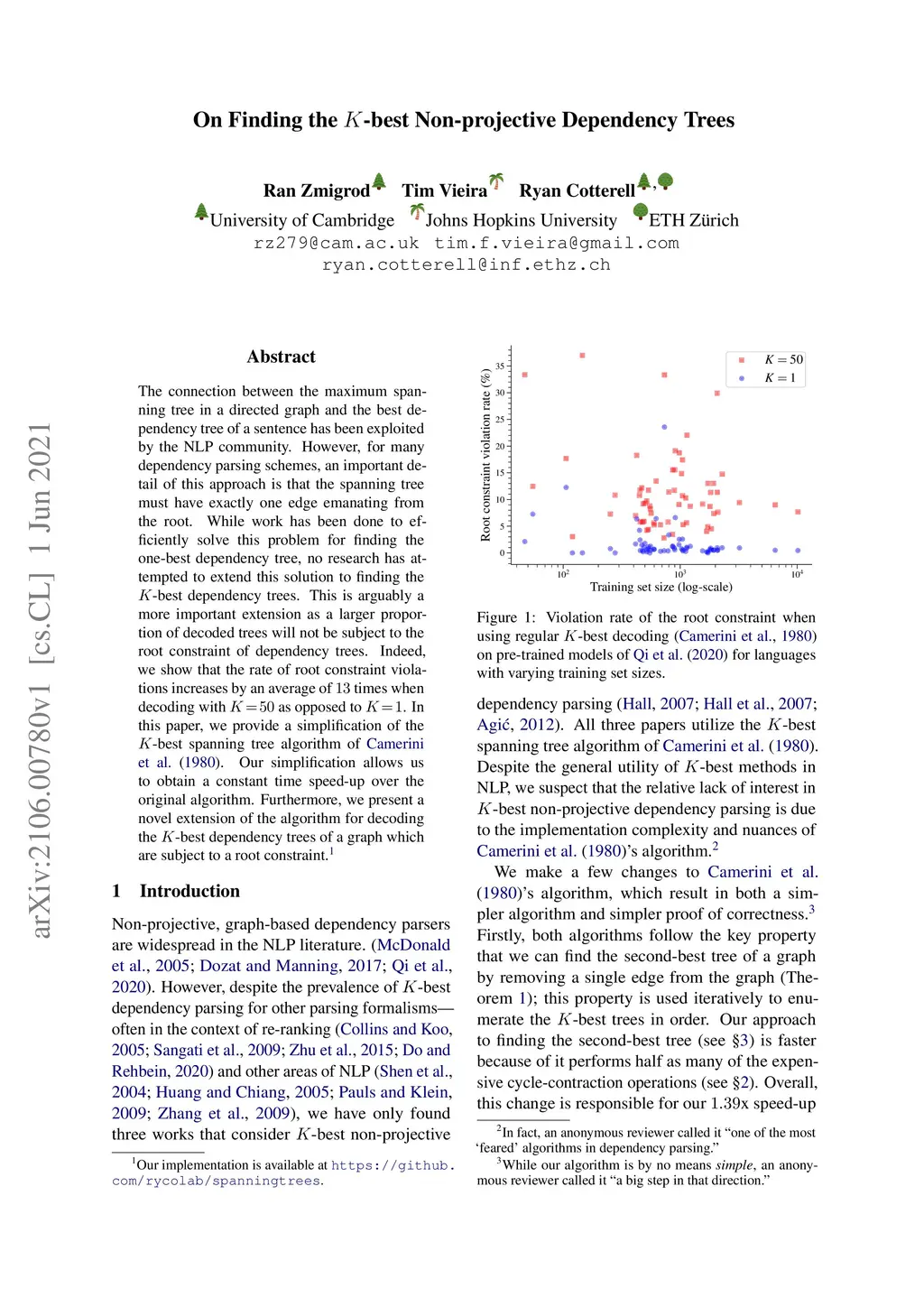 The connection between the maximum spanning tree in a directed graph and the best dependency tree of a sentence has been exploited by the NLP community. However, for many dependency parsing schemes, an important detail of this approach is that the spanning tree must have exactly one edge emanating from the root. While work has been done to efficiently solve this problem for finding the one-best dependency tree, no research has attempted to extend this solution to finding the -best dependency trees. This is arguably a more important extension as a larger proportion of decoded trees will not be subject to the root constraint of dependency trees. Indeed, we show that the rate of root constraint violations increases by an average of times when decoding with as opposed to . In this paper, we provide a simplification of the -best spanning tree algorithm of Camerini et al. (1980). Our simplification allows us to obtain a constant time speed-up over the original algorithm. Furthermore, we present a novel extension of the algorithm for decoding the -best dependency trees of a graph which are subject to a root constraint.