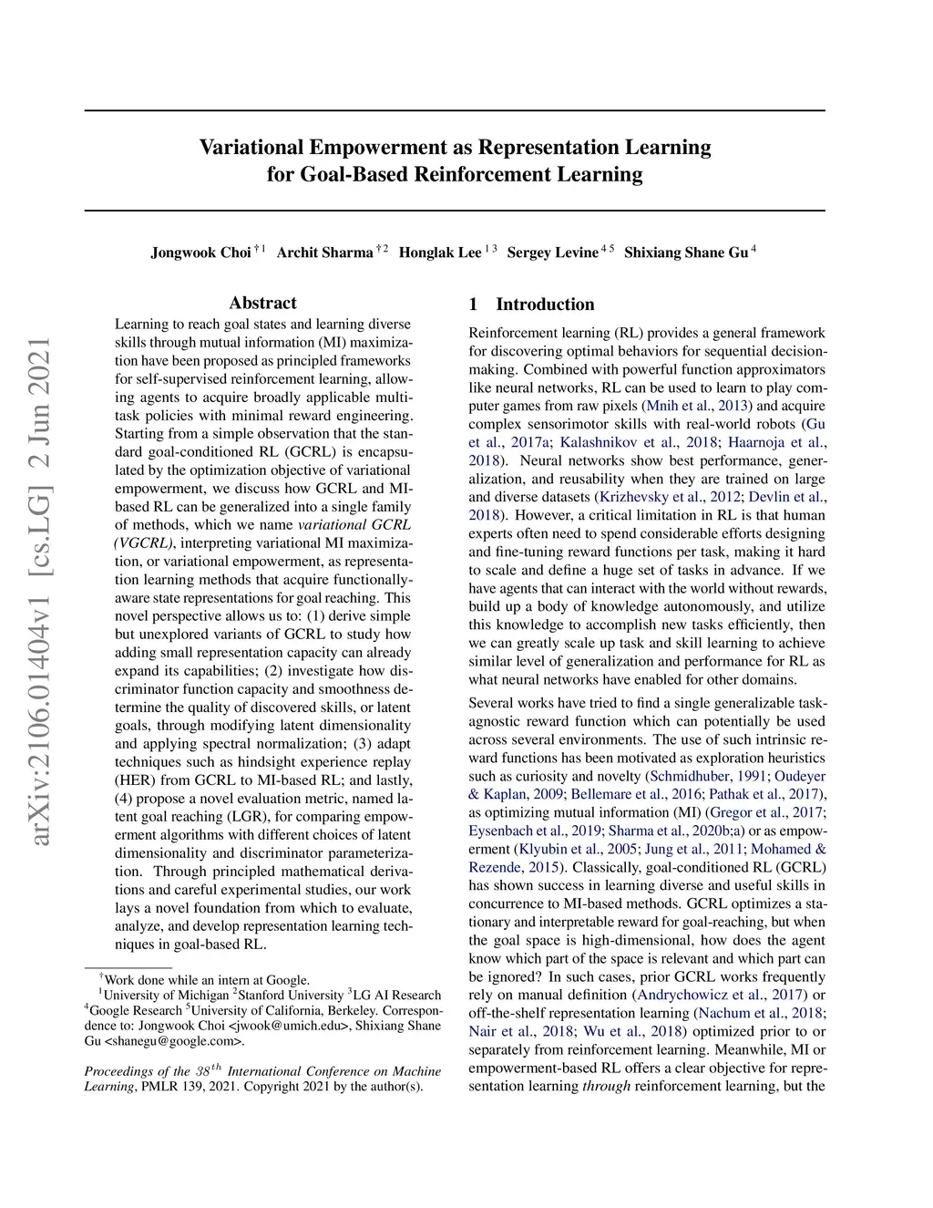 Learning to reach goal states and learning diverse skills through mutual information (MI) maximization have been proposed as principled frameworks for self-supervised reinforcement learning, allowing agents to acquire broadly applicable multitask policies with minimal reward engineering. Starting from a simple observation that the standard goal-conditioned RL (GCRL) is encapsulated by the optimization objective of variational empowerment, we discuss how GCRL and MI-based RL can be generalized into a single family of methods, which we name variational GCRL (VGCRL), interpreting variational MI maximization, or variational empowerment, as representation learning methods that acquire functionally-aware state representations for goal reaching. This novel perspective allows us to: (1) derive simple but unexplored variants of GCRL to study how adding small representation capacity can already expand its capabilities; (2) investigate how discriminator function capacity and smoothness determine the quality of discovered skills, or latent goals, through modifying latent dimensionality and applying spectral normalization; (3) adapt techniques such as hindsight experience replay (HER) from GCRL to MI-based RL; and lastly, (4) propose a novel evaluation metric, named latent goal reaching (LGR), for comparing empowerment algorithms with different choices of latent dimensionality and discriminator parameterization. Through principled mathematical derivations and careful experimental studies, our work lays a novel foundation from which to evaluate, analyze, and develop representation learning techniques in goal-based RL.