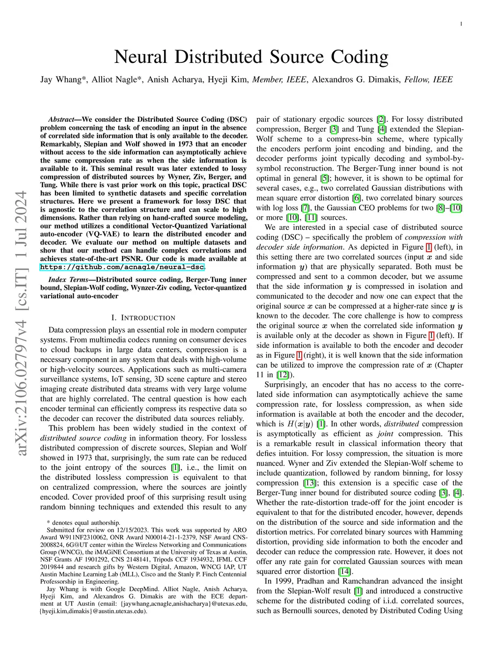 Neural Distributed Source Coding