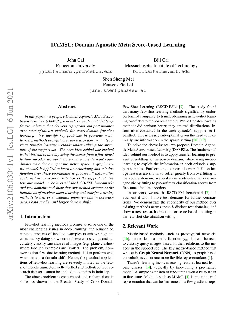 DAMSL: Domain Agnostic Meta Score-based Learning