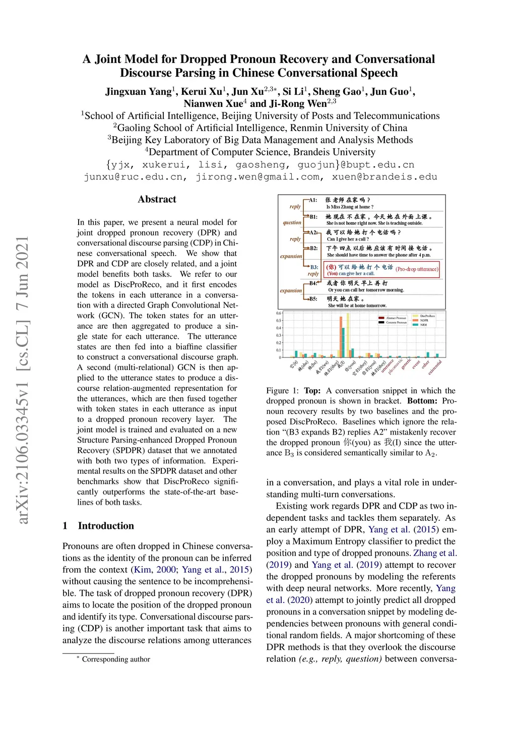 A Joint Model for Dropped Pronoun Recovery and Conversational Discourse